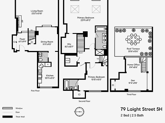 Enjoy Tribeca loft living at its finest in this spectacular two-bedroom, two-and-a-half-bathroom triplex with a spacious home office and roof deck.