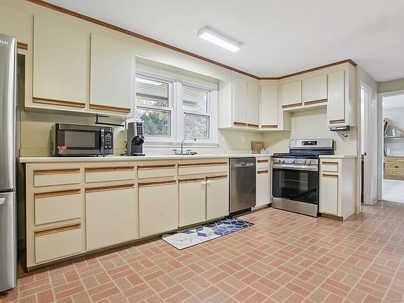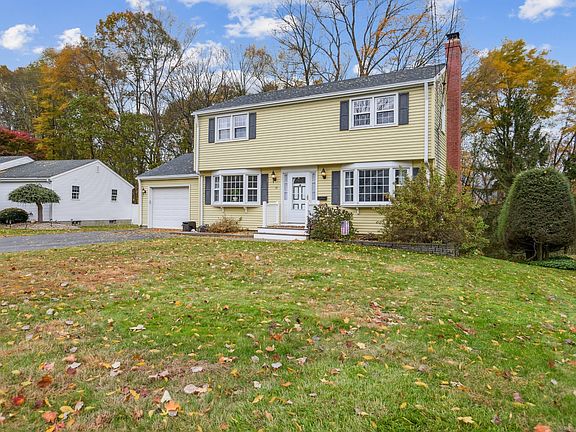 As you drive into this sought-after neighborhood you'll appreciate the appeal right away. Very little traffic on this cozy crescent street. The classic colonial 4 bedroom, 1 1/2 bath home has charming street appeal with its bay windows and large front lawn. The deck off the back overlooks an absolutely gorgeous lot that's wooded to the rear but still provides ample open space for outside enjoyment. The eat-in kitchen has plenty of counter space, cabinetry, new appliances and room for a table and chairs. The floor plan's circular flow, spacious living and dining rooms filled with light, create perfect spaces for family gatherings and entertaining. The four bedrooms upstairs are off a central landing and include a large primary. The house is warmed by efficient natural gas heating and a gas fireplace in the living room. The walk-out basement has a finished, heated recreation room/playroom, high ceilings, a laundry area, workshop and full-sized windows. It doesn't feel like a basement at all. The roof was replaced in 2018 and there are replacement windows and an updated gas boiler. New electrical panel and recessed lighting installed in 2023. There are hardwood floors throughout, including underneath the carpeting in the living room. The entire interior has been freshly painted with designer colors. This property has been meticulously maintained and this neighborhood knows how to celebrate the holidays. Request your showing today.