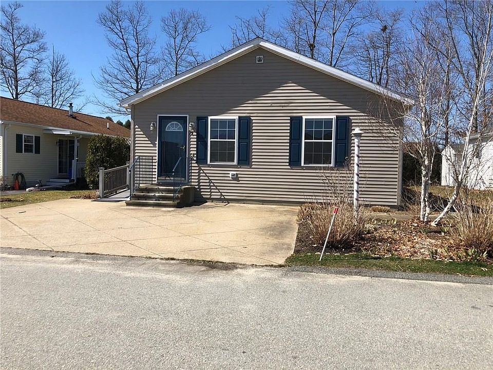 Welcome home to this spacious 2-bedroom, 2-bath ranch situated in the gated 55+ community, CountryView Estates with its beautiful and quite country setting. This is a rare Countryview home with a poured concrete foundation and accessible crawl space with excellent storage as well as interior drywalled walls (not prefabricated). Amenities of this home include handicap access to side entrance, large and private Trex deck with sliding glass doors opening into the residence, private wooded backyard with large custom storage shed and mature plantings. Open floor includes large living and dining area, pass-through from kitchen and laundry room directly off kitchen. Large Master Bedroom and master bath with a standup shower. CountryView Estates in the areaâs preeminent Over 55 Community with many amenities such as a fitness center, swimming pool, bocce ball court, shuffleboard & a billiards room to name a few. With the highway, shopping mall & casino near by, the location of this gated complex is very convenient. Just minutes from route 24, just over the RI/MA line.