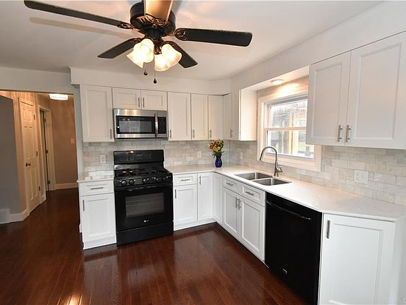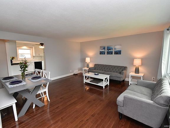 Bright and cheerful home in demand West Seneca location! Professional remodel completed in all 4 bedrooms, living room, kitchen and both bathrooms. Energy efficient window replacements and brand new oak flooring gleams throughout! Kitchen features beautiful marble backsplash, quartz countertops, motion activated faucet and new slow-close cabinetry! Both bathrooms have gorgeous tile work. Lower bathroom features LED lighting and bluetooth capable built in speakers. Generous space for entertaining with large enclosed deck and full acre of land! New furnace and HWT installed 2017 and come with warranty. Clean, maintenance free and move in ready! Showings start at open house Sunday 7/29 1-3pm. Offers will be reviewed Friday 8/3 at 630pm.