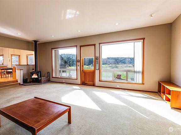 This quality-built, single-level home greets you w/ expansive, well-lit spaces & 3.11+/- acres of flat land bathed in abundant sunshine. Over 2600 sq ft featuring 3 generously sized bedrooms, a large open-plan kitchen/dining area & a living room w/ a sizable woodstove to warm you on cool days. High ceilings throughout ensure each room is filled w/ natural light. An attached 3-car garage offers ample space for vehicles, hobbies, or storage. The home includes a new heat pump & comes pre-wired for a generator. Surrounding gardens boast stunning flowers & plants, while fenced vegetable beds are perfect for home gardening. All this just a short drive from town, with the added allure of west side sunsets & nearby beaches.