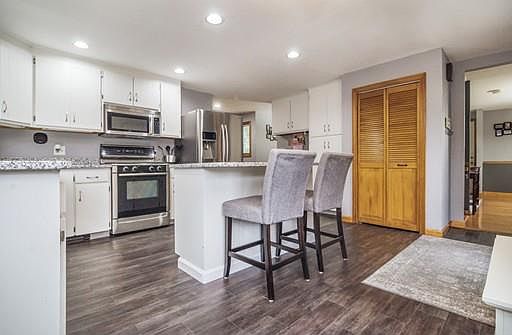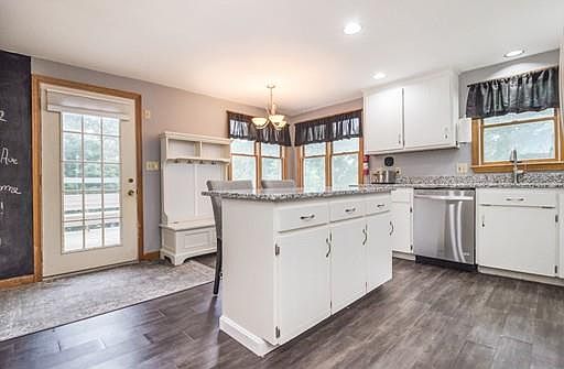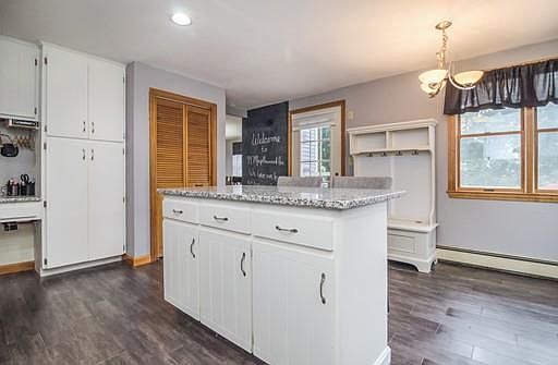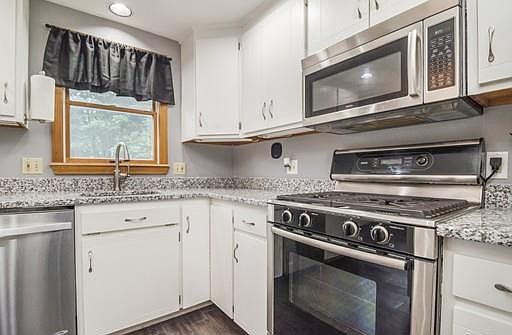 Motivated seller looking for buyer. Updates throughout this colonial style home located in neighborhood. Three bedrooms and two full bathrooms. Updated kitchen with island, granite counter tops, stainless steel appliances, gas cooking, recessed lighting, desk area, wood floor and access to deck area. Open concept living room and dining room with hardwood floors. First floor laundry and full bathroom with shower and tub. Second floor has three bedrooms with closets and full bathroom. Master bedroom has access to full bathroom. Second floor bathroom has tub and shower, tile floor and skylight. Lower level boasts a large family room with wood burning stove, picture window and built-in bookshelves. Walk out basement, plenty of room for storage and/or workshop. Weil-McLain Boiler BTU 95.0%. 2017 Hot Water Heater. 2002 roof. Whole House Fan. Large deck overlooking large backyard. This property is ready to welcome you home.