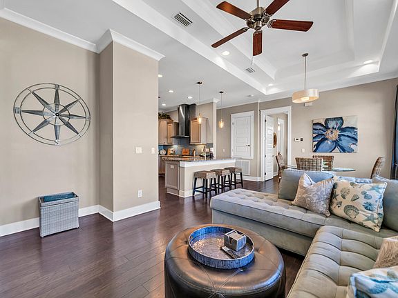 Live the 30A lifestyle just in time for summer. This beautifully furnished Aruba floor plan townhome is located in the heart of Prominence--one of 30A's most vibrant and amenity-rich communities. Ideally situated between Alys Beach and Seagrove, this turnkey 2-bedroom, 2-bath retreat is just steps from The Big Chill, the community's lively hub for dining, entertainment, and family fun.Enjoy 1,293 square feet of light-filled living space, featuring soaring windows, a gourmet kitchen with stainless steel appliances, granite countertops, gas cooktop, and designer backsplash. The open-concept layout flows seamlessly to a spacious covered balcony, perfect for morning coffee or afternoon breezes.