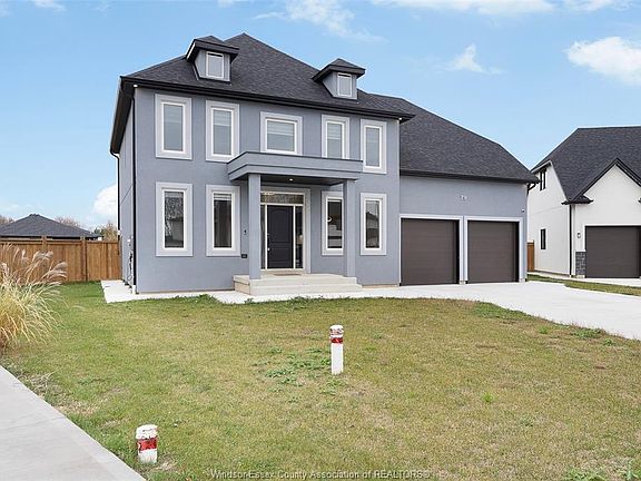 Tucked at the end of an exclusive court, welcome to 79 Noble - a signature-built masterpiece redefining luxury living in beautiful Amherstburg. Built by Signature Homes Windsor in 2023, this exquisite two-storey home spans almost twenty-five hundred square feet of refined design and exceptional craftsmanship. Every detail speaks sophistication — from the warm glow of the gas fireplace to the tasteful selections curated throughout. Entertain with ease in your gourmet kitchen and formal dining room — complete with new modern appliances and effortless flow. A dedicated main floor office provides the perfect space for productivity, while the living room will welcome you to relax and unwind. A main floor mudroom and 2nd floor laundry are functional design features you will appreciate every day. The primary retreat is pure indulgence - a spa-inspired five-piece ensuite and a massive walk-in closet you’ll fall in love with. Each of the four bedrooms features its own walk-in closet — a rare touch of convenience for every member of the family. Sitting proudly on a premium pie-shaped lot, this home is move-in ready for your family to begin its next chapter.