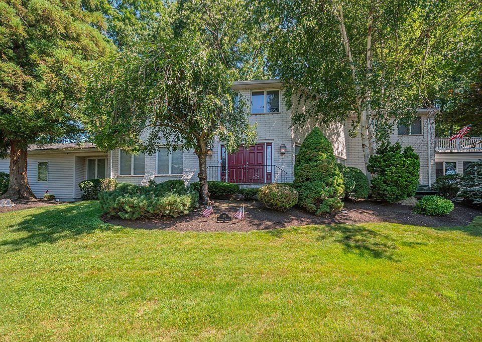 Move right into this contemporary-styled Colonial and enjoy stunning waterfront living of Pillings Pond, tucked away in a peaceful setting, yet close to the popular Market Street shopping center and easy highway access. The chef will love the spacious, open concept kitchen with mostly stainless-steel appliances, a breakfast bar, beverage fridge, and informal dining with large windows to showcase the tranquil pond views beyond. Relax in the cheerful sunroom with nature views and a slider to the stone patio and hot tub. A wood burning fireplace, with a dramatic floor to ceiling surround, adds a cozy feel in the huge family room. The master suite feels like a weekend getaway with a cathedral ceiling, walk-in closet, and private deck overlooking the pond for treetop views. Three more family bedrooms offer versatility to choose one as a home office or virtual classroom. Enjoy summertime fun on Pillings Pond perfect for boating and fishing.