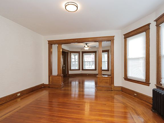Check out this COZY & CLEAN Chicopee rental ready to be your next home for 2026! Head inside this FIRST-FLOOR unit to be greeted by the open living + dining room combo space. Beautifully preserved hardwood floors and wood trim throughout. Formal dining room with custom built-in cabinet that leads to the FULL-WALK IN PANTRY. Spacious kitchen with modern vinyl plank floors. THREE FORMAL BEDROOMS each equipped with ample closet storage (tandem closets in Bedrooms 2 & 3). MODERN BATHROOM with thoughtful upgrades including newer fixtures, medicine cabinet storage and vinyl plank flooring. Well-maintained outdoor areas with easy access to front & back entrances. Street parking available; house is on a corner lot of a dead end street. This property is tucked away on a quiet street WALKING DISTANCE TO ELMS COLLEGE. Conveniently located minutes to highway access and within 8 minutes of Baystate, Mercy & Shriners hospitals.