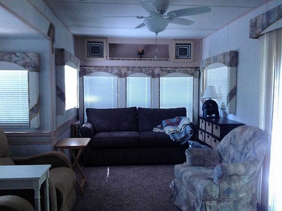 Seasonal 55+ park model on scenic lot in Emerson Campgrounds. You'll love spending time in the large 3 season room. Then through the sliders - fully furnished with queen bed and built ins. Livingroom has built in TV. Enjoy the nearby clubhouse with inground pool and boccie court. Large shed. Water and sewer provided. Electricity billed monthly through the park. Occupancy May 15-October 15. NO DOGS. Indoor cats allowed. Park approval required.