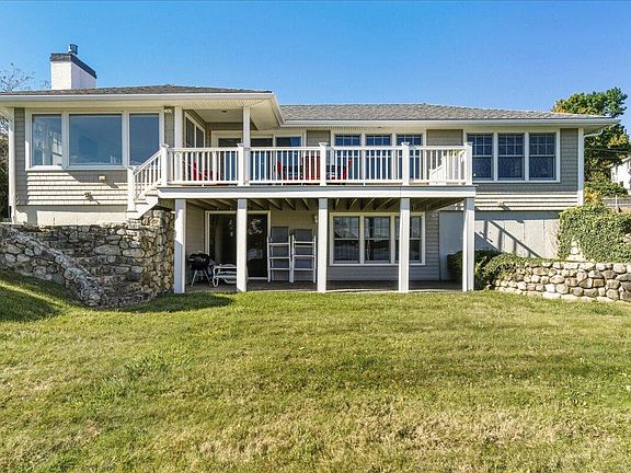 In-town Perkins Street waterfront home with expansive views of Castine Harbor, Penobscot Bay, Brooksville and the Islands. This house was completely renovated in 2010, and is in excellent condition. A new roof was installed in 2024. Open floor plan living space that fronts onto a deck. The living room has water views on three sides, and a gas fireplace. Kitchen with spacious granite countertops and ample storage. On the main level is also a primary bedroom with water views, en suite bath, and walk-in closet. A second bedroom also with water views, and a full bath off of the hall. The lower level has a family room that opens to a lower patio area. Also on the lower level is a third bedroom, and third bath, as well as laundry room, storage room and a workshop. The lawn rolls down to the shore, with steps to the beach. A fantastic location with both long views of the bay, and nearer views of the comings and goings of the harbor. A ready to move-in, low maintenance home.