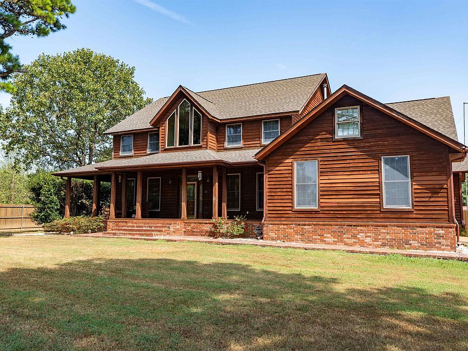 This beautiful home is a must see! Setting on 1.80 acres. Home has a new high resistant roof, it is the best for wind hail. Open floor plan, eat in kitchen with lots of windows. Half bath downstairs. also downstairs has large Master bedroom walk-in closet a large master bath with granite throughout, walk in shower, double vanity, large jacuzzi tub. Home has a large laundry room with lots of storge. Upstairs has 3 bedrooms full bath. Home has an additional 275 sq. feet room that could be used as an office. The home has a pellet stove. Two car garage, large porch on front and back. Property has raised garden beds a storage building and extra parking.