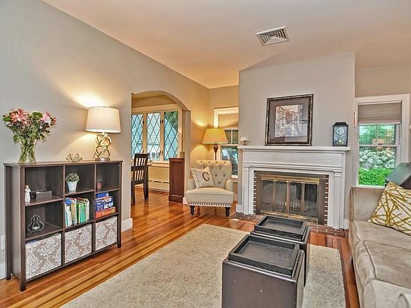 This charming three bedroom home offers easy one level living on over 3/4 acres and is located just a short stroll from the Upper Charles Rail Trail, Lake Winthrop, quaint downtown Holliston, the schools, playground and more... The home has an enclosed front porch, living room with fireplace and built-ins, dining room, kitchen with white cabinetry and lots of counter space, beautifully renovated full bathroom with subway tiled tub/shower and a back porch/mudroom. The master bedroom offers two large closets. Two additional bedrooms each have hardwood floors under the carpet. Large backyard provides great outdoor space for entertaining with patio and firepit areas. In addition, there is a one car garage. New septic installed in 2010. All this plus Holliston's highly ranked school system offering French Immersion, Montessori and Traditional programs. Offer are due by 2pm July 11, 2018.