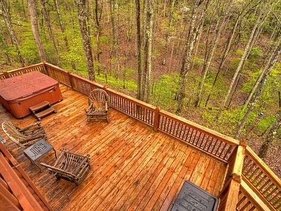 CHARMER IN CHERRY LAKE ... An absolutely adorable and well-maintained cabin in the sought-after Cherry Lake Community. Sits at the end of a cul-de-sac on a short gravel road with plenty of parking. Roomy 2/2 with a large sleeping loft (3rd sleeping area) overlooking the great room with gas log fireplace. Roomy master on main with attached full bath. Large sunroom at main entrance with staircase to terrace level and second bedroom, bath and gathering area. Large upper deck at main entrance and large lower deck with hot tub. Beautiful fire pit area recently completed. Tucked away off the paved main road to enjoy the peace, serenity, and quietness of the very wooded location. Beautifully decorated and selling turn-key.