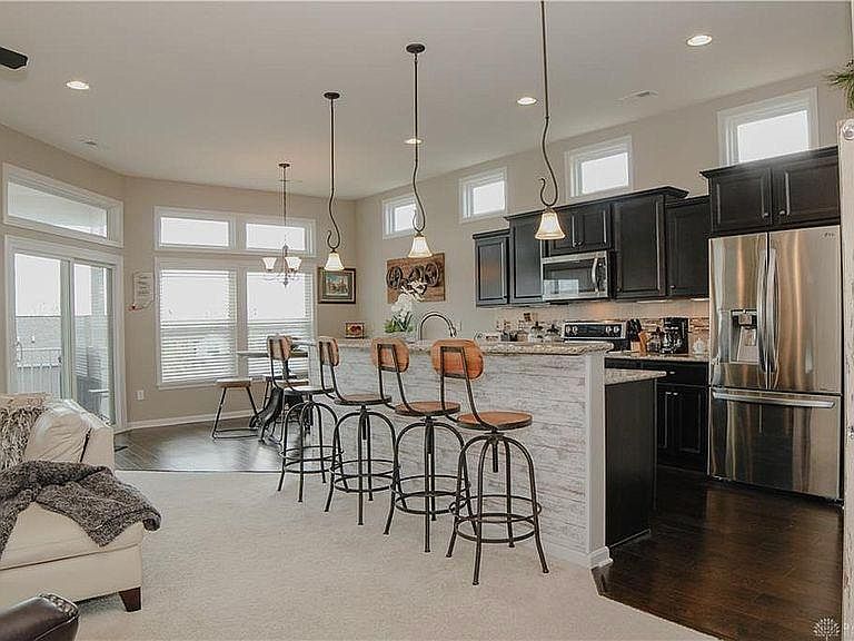 High end, upscale, modern condo only 4 years old. This is a single floor condo on the second floor, so stairs lead up to the living space and no one above you. Grand spaces and streaming light define this condo as penthouse living at its finest. An open Kitchen/Family Room features soaring 10 ft. ceilings and a Morning Room leading to an adjacent, secluded deck. The large Owner's Suite has two walk-in closets and a spa-like Owner's Bath. A private entrance and 2-car attached garage make this home uniquely yours. The second bedroom has its own full bath. The study can easily be used as a third bedroom. The condo has been constructed with high-end finishings throughout to include a fireplace, granite, cabinetry, and flooring. The gourmet kitchen includes stainless steel appliances, a large island, walk-in pantry and tile backsplash. Comes with a washer and dryer. Situated in The Springs at Settlers Walk planned development community in Springboro, OH with beautiful landscaping, walking paths and ponds. Your rent includes all exterior maintenance such as landscaping and snow removal. Also included are community amenities such as a pool, clubhouse, fitness center and parks. This condo comes unfurnished but with all appliances. Renter responsible for gas, electric, cable, internet and insurance. Owner will pay water, sewer, trash and HOA fees.