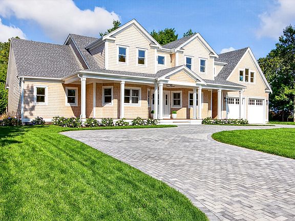 Welcome to this brand-new custom-built residence, located at the end of a cul-de-sac in a waterfront neighborhood, known as River's Edge. For a low annual fee of just $500, residents enjoy access to two association docks for boats up to 19', as well as tennis and pickleball courts. Spend your days kayaking or paddle boarding along Child's River, or take a short boat ride to relax on Washburn Island. Enjoy the convenience to many of the public beaches Falmouth has to offer, along with easy access to local restaurants and shops in both downtown Falmouth and Mashpee Commons. The first floor offers a spacious primary suite, home office, mudroom with a laundry area, and an additional room adjacent to the dining room. The gourmet kitchen features custom cabinetry, luxury appliances, a built-in coffee bar, and a butler's pantry. Upstairs, you'll find the second laundry room, a bonus room over the garage, three additional bedrooms, and three full bathrooms. The outdoor spaces are just as impressive. A U-shaped cobblestone driveway leads to the covered mahogany front porch. The partially fenced backyard has room to add an in-ground pool and it abuts nearly 7 acres of conservation land.
