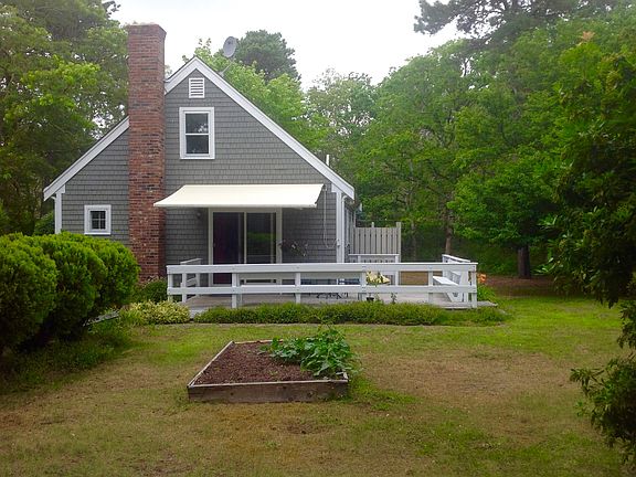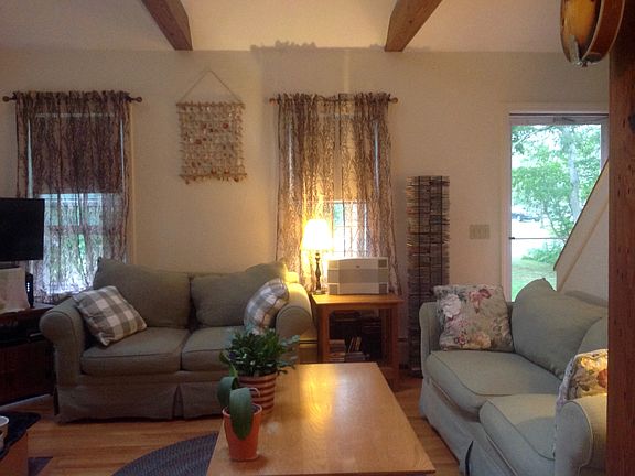 Post and beam stlye Cape with vaulted ceilings,3BR,1.5 Baths with finished basement on a .58 acre corner lot; newer roof; updated kitchen -- cherry wood cabinets, chrome appliances, granite countertops--and updated baths; wood floors...close to golf and beaches! Bright and airy, skylights...lot offers woodsy privacy. Title V Passed Septic. Some notice needed for showings!