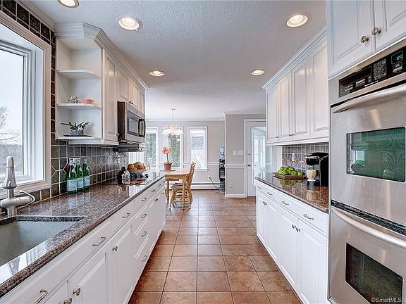 This home will be the apple of your eye! Exceptional curb appeal, Bright, light, inviting colonial with great winter views of Hartford and Springfield! Public sewer and so close to town! Enjoy entertaining in your eat in kitchen with white cabinetry, double ovens and granite countertops. Bay window affords great view of private backyard. Hardwood floors, classic dining room with corner cupboard , formal living room and a first floor family room with built ins! Second floor plays host to master suite with double sinks and walk in closet! Possibility of 4th bedroom, currently being used as a spacious office with built ins. Additional 500+ Sf in finished walk out lower level with cozy fireplace. Central air! 2 car garage that could be a 3 car tandem!