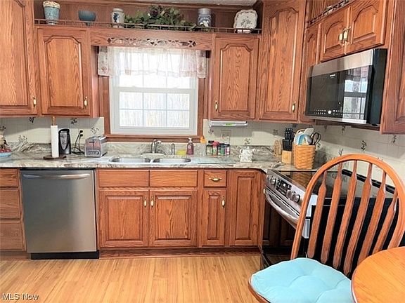 ... NEW PRICE... SELLER HAS AN ACCEPTED OFFER ON A NEW HOME AND VERY MOTIVATED. Must see this 4 bedroom 2 bath home with a 2 car over sized garage on over 2 acres with a level yard and plenty of room for a pool. New Kitchen recently with beautiful cabinets, granite counter tops, and Stainless Steel appliances. Huge dining room with French sliding doors to the rear deck that leads to the enclosed Hot tub. Living room with a bay window and a beautiful view. Upper level has 3 bedrooms and updated bath and vanity with marble counter top. The additional bedroom and bath with updated vanity with marble counter top and step in shower on the lower level. Family room has an electric fireplace, the propane line is there and can be converted back plus larger windows to let in plenty of sunshine. Furnace is a Carrier and central air is newer. Newer windows throughout the house and block windows in the basement. Washer and dryer stay. There is an additional huge storage room on the lower lev