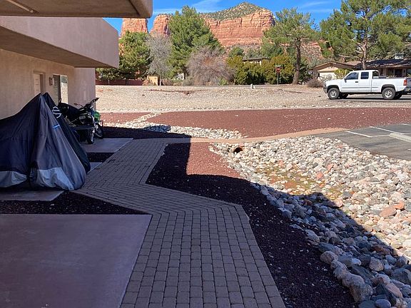 Great location in the Village of Oak Creek, Sedona, AZ. Red rock views! New paint and carpeting 2024. Single story. 1 bedroom plus living room., 3/4 bath; walk-in shower. Stacked washer/drier in unit. 2 carports and lots of parking spaces. Single story building. Lovely area.