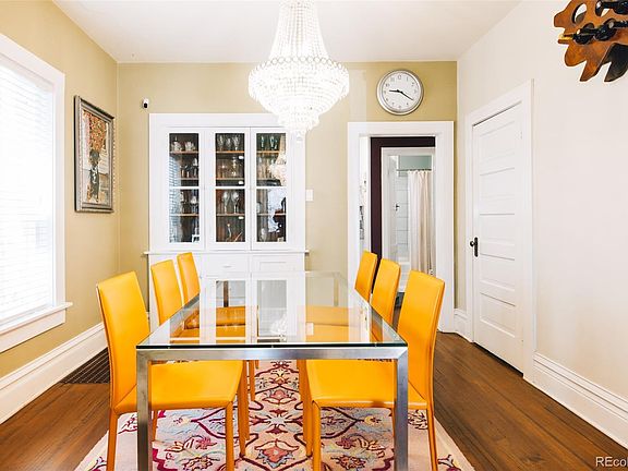 A vision of vibrant character cascades throughout this Speer duplex. Revel in leisurely relaxation outdoors on a covered front porch w/ a swing. Further inside, a luminous layout unfolds w/ charming details crafting an inviting atmosphere. A spacious living area is warmed by a cozy fireplace while a dining room showcases classic built-ins and an eye-catching chandelier. Generous cabinetry and a tiled backsplash elevate a quaint kitchen. Retreat upstairs to find three sizable bedrooms, one of which is currently being used as a spacious walk-in closet w/ an included and removable closet system. Two serene bathrooms — one featuring a clawfoot tub — offer serene settings for relaxation. Flexible living space is found in a basement w/ a rec room perfect for a home office, craft room or fitness area. Outside, a private and landscaped backyard sets the scene for outdoor entertaining w/ a patio. A newer 1-car garage offers a modern and secure parking space and storage for outdoor recreation equipment or gardening supplies. Walk, run, bike to everything from this location including bustling Broadway, Washington Park, Cherry Creek North and the quaint neighborhood eateries and shops.
