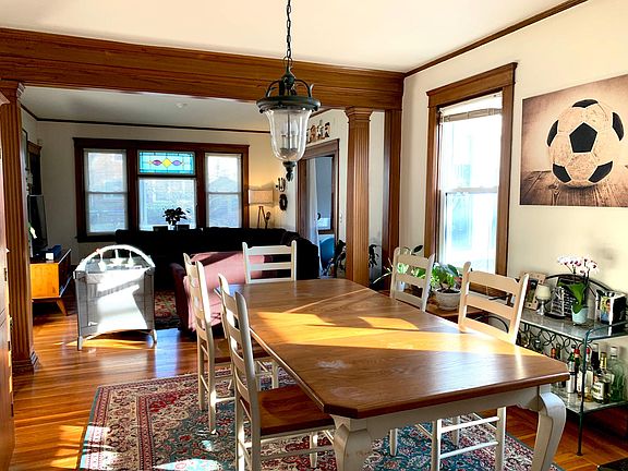 Spacious, cozy three-bedroom/1 bathroom apartment is available at a prime location on East Side. The house is on the quiet corner of Savoy Street and Aldrich terrace, with beautiful views and a backyard patio. An excellent neighborhood for families, located between Hope Street and Elmgrove Avenue, next to the Brown Football Stadium, walk to JCC park, Lippitt Park farmer's market, Seven Stars Bakery, and only a few blocks away from Black Stone Boulevard. The apartment unit is on the house's first floor, with plenty of windows and light. It boasts a large open living and dining room space with natural wood flooring and wood trimming throughout. A newly built deck is for exclusive use for tenants of this unit. A separate shared garage and driveway that could park two cars (one in garage and one out) is for this and plenty of street parking spaces around the house. It comes with a brand-new washer and dryer in the basement specific to the unit, a newly installed oven hood in the kitchen. The bedroom in blue has been repainted in white. (Note: The apartment is pristine with most of the furniture pieces removed) The house is well-maintained, an apartment like this is rare on Eastside and will go quickly; contact us by email to book a tour. Please include a small introduction of yourself when make an inquiry. Thanks! Owner pay for water, sewer, landscaping and snow removal; Tenant pay for gas, electricity, heating and wifi; No smoking in the house, maximum one pet allowed. No subletting.