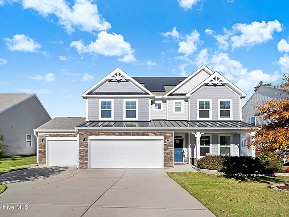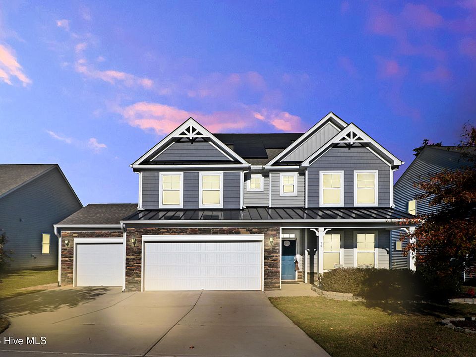 Welcome to 79 Stallion Way, a stunning 2021 transitional home in Benson offering an expansive and flexible layout with five bedrooms and four full bathrooms. Spanning over 3,500 square feet, this residence greets you with an open-concept main floor perfect for modern living. The chef-inspired kitchen features granite countertops, a large island, and a pantry, all flowing seamlessly into the spacious family room anchored by a cozy fireplace. This level also includes a formal dining room and a highly desirable main-floor bedroom with access to a full bath. Ascend to the second level to discover a luxurious master suite complete with a private sitting room and spa-like en-suite bath. This floor also hosts two additional generous bedrooms, another full bath, a large bonus room, and the convenience of an upper-level laundry. The versatility continues on the third floor, which provides a private fifth bedroom, a fourth full bathroom, and ample walk-in attic storage. Outdoor living is equally impressive with a screened porch for relaxation and a three-car garage for all your storage needs. This home is also equipped with energy-efficient solar panels. Located in the desirable Daniel Farms community with access to amenities and convenient to the McGee's Crossroads area, this property is a rare find. Do not miss the opportunity to make this exceptional house your new home. Schedule your private tour today.