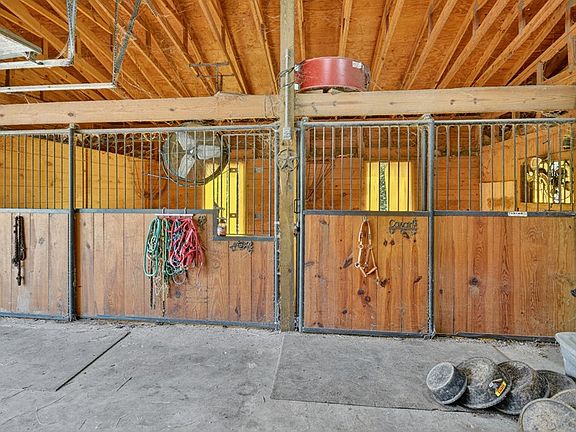 Stone fireplaceCharming log cabinBarn with stallsFenced rolling pastures