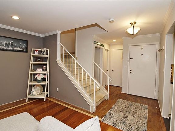 Tucked away in the premier townhouse complex that is the Hamlets of Nanuet ,this tri level townhouse has been thoughtfully renovated and is ready to be called your new home today. Main level boasts a newly renovated custom eat in kitchen featuring white cabinetry, Granite counter tops and Stainless appliances.Brand new powder room boasting white wood vanity with Granite top. Freshly painted in today's sought after colors. Open floor plan featuring huge new windows, living and dining room with a private balcony overlooking wooded back. Highlighting the second level is a huge master bedroom complete with full bath and dressing area . The second bedroom is large with a gorgeous brand new main bathroom highlighted with Subway tiles, white wood vanity and Marble top. The home is complete with a finished walkout lower level (family room) with a large laundry room, extra refrigerator, Cedar closet and huge storage areas. 1 car garage, cul de sac location and lots of guest parking outside your door. Don't be shocked, the HOA fee includes heat, cold and hot water and all exterior maintenance. HOA is responsible to repair or replace boiler or hot water heater. Your new relaxed lifestyle includes a pool, tennis court, clubhouse,playground and easy access to highways,shopping and more. Did we mention Clarkstown Schools too?