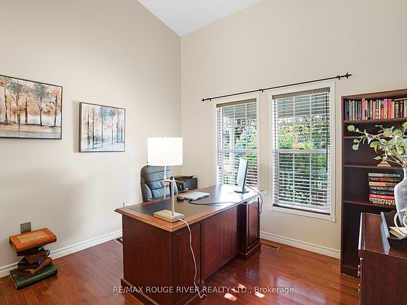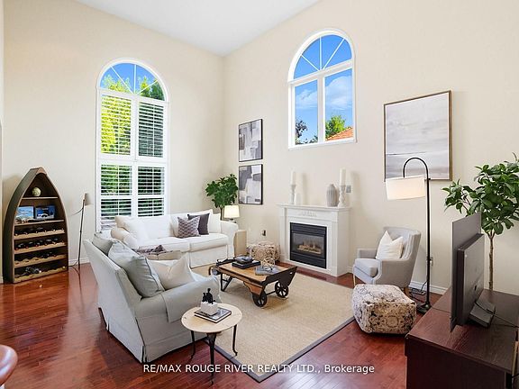 Welcome to this exquisite executive residence nestled in one of Brooklin's most desirable pockets. Thoughtfully designed with elegance and functionality in mind, this home boasts an impressive layout with soaring ceilings, expansive windows, and timeless finishes throughout. The great room features rich hardwood floors, custom pot lighting, and a cozy gas fireplace, creating the perfect atmosphere for family gatherings or sophisticated entertaining. A set of double doors opens to a spacious main floor office with a cathedral ceiling & abundant natural light - ideal for working from home. Host memorable dinners in the formal dining room adorned with a tray ceiling & large window. The chef-inspired kitchen is a showstopper, with quartz countertops, porcelain stone floors, custom backsplash, high-end stainless steel appliances including a gas range-top, and a large breakfast island. The adjoining breakfast area opens onto a private deck and fully fenced backyard oasis - perfect for morning coffee or summer BBQs. Convenience meets comfort with a main floor laundry room and powder room completing the first level. Upstairs, the luxurious primary retreat is a sanctuary unto itself, featuring a serene sitting area, a generous walk-in closet with custom organizers, and a spa-like ensuite with dual vanities and a glass shower with bench seating. Three additional bedrooms provide plenty of space for family or guests, and share an updated main bathroom. The fully finished basement extends the living space with a large recreation room anchored by a stunning electric fireplace with heat that can be altered and lighting to suit mood, another bedroom, and 3-piece bathroom - ideal for overnight visitors or in-law potential. Step outside to your beautifully landscaped backyard, complete with a relaxing hot tub- your own private escape. Located in a prime family-friendly neighbourhood close to top-rated schools, parks, and all amenities, this exceptional home truly has it all.