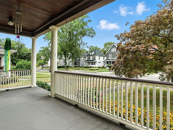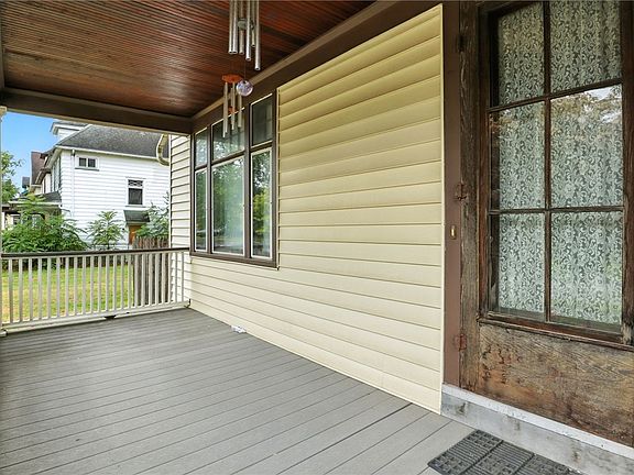 Welcome to this beautifully maintained 4-bedroom, 2-bath home that blends timeless character with modern updates! Step inside to find stunning original hardwood floors and well-preserved natural wood trim that showcase the home’s classic charm. The spacious layout includes a walk-up attic for additional storage and a full basement with glass block windows. The kitchen comes fully equipped with appliances, and the washer and dryer are also included—making this home truly move-in ready. Living areas flow seamlessly, while the incredible front porch with composite decking is the perfect spot to relax and enjoy the neighborhood. Recent updates provide peace of mind, including a high-efficiency forced-air furnace (2019), central A/C (2006), vinyl siding and windows, and concrete walkways (approx. 5 years old).