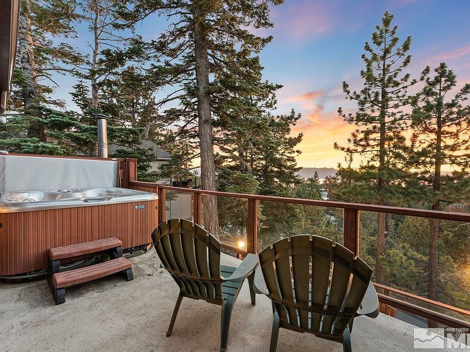 Spectacular lake and mountain views from two spacious, sunny decks that are great for dining, grilling and entertaining. Enjoy close proximity to Heavenly Ski Resort - 3 minutes to either Boulder or Stagecoach Lodges. A short 10-minute drive to Stateline entertainment, shopping and beaches. Easy parking and access - located at the end of a cul-de-sac with ONLY three steps down to the front door. One bedroom and full bath on the main level. Large master suite upstairs with fireplace, deck, hot tub and loft., Guest room, bathroom and laundry downstairs. Light, bright open kitchen with granite counters. Furnished and turnkey with fresh paint and carpet. This attractive Nevada address offers year-round adventure and activities including skiing, mountain biking, hiking, off-roading and boating. Showings by appointment only. Please call listing agent. Buyer and buyer's agent to verify all information.