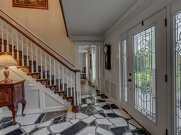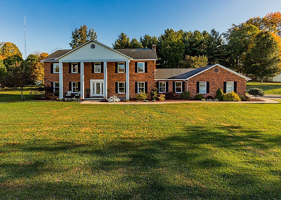 Unique and elegant home nestled on nearly 2 acres! 5 bedrooms, 4 full baths, huge office, formal dining room, gorgeous trim and finish work throughout, hardwood floors, first floor master or formal living room, updated kitchen with great view, beautiful 1st floor bath, spacious bedrooms, open entry with marble flooring, and custom wood staircase and bannister! Well built and all brick with all exterior walls 2x6 studs! low utility bills, new hvac control station, hot and cold water available at garage sink. Huge storage shed! This one is truly one of a kind and well maintained!