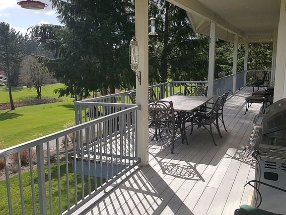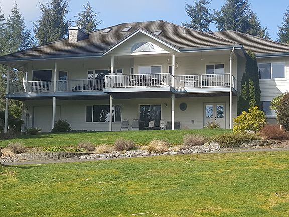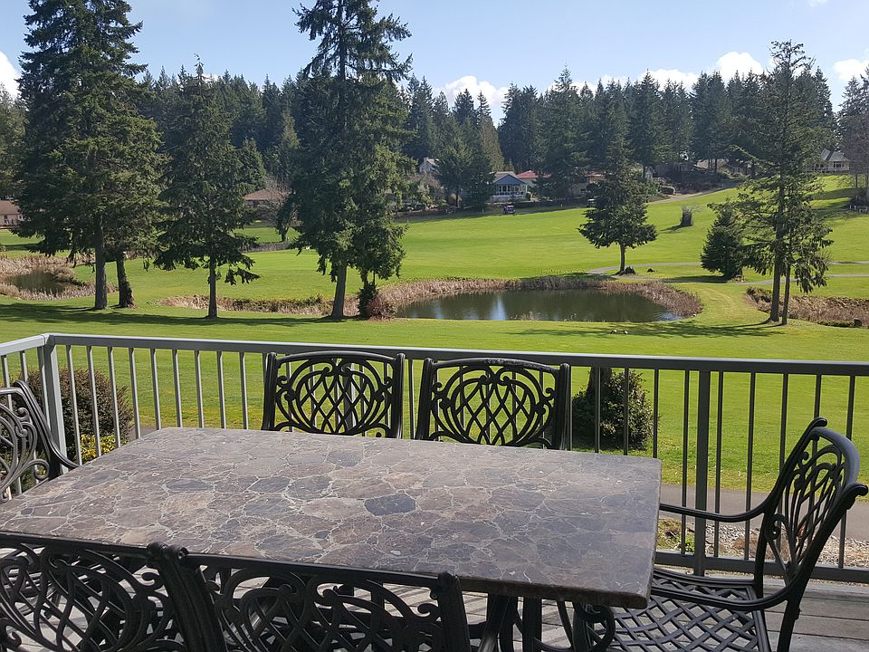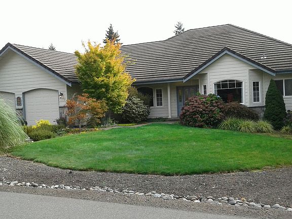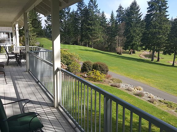 Golfer's Custom Dream home w/OMG views from every room, only lived in half it's life (snowbirds). Solid Oak doors & trim, KraftMaid cabinets, tile roof, Main Floor Living, 27 holes, golf cart gar w/course access, home safely above, 60 ft Covered Trex Deck w/gas line to grill, pool table, sauna, new appliances, sink/faucets. Air Cond, pro landscape w/sprinkler, wired for security, $30K in Upgrades & Remodels. Quiet Friendly pristine community near hwy, shopping, cafes, marina & Ferries.