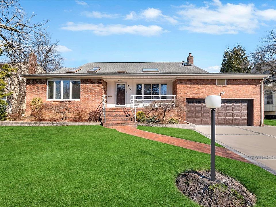 Magnificent 5 Bedroom, 3 Bath Split-Level Home. Bright & Sunny, living room with vaulted ceiling and skylight. Formal Dining Room with Eat-in-Kitchen, Den with Fireplace, Sunroom, 2 Car Garage, Gas Heating, Central Air Conditioner, Master Bedroom With Full Bath. Hardwood floors, In-Ground sprinkler and Recessed Lighting. Minutes to school, shopping, parks and houses of worship., Additional information: Appearance:Excellent,Separate Hotwater Heater:Yes