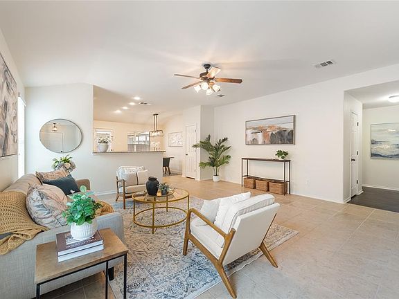 This beautiful brick and stone home offers a serene and bright atmosphere with its open layout and abundant natural light. The roof was replaced May 2021. The tile floors throughout the home provide a cool and refreshing feel. This home features a fantastic kitchen with a gas range, pantry and ample cabinet and counter space. The kitchen and dining area are perfect for those who enjoy cooking and entertaining. The primary bedroom is generously sized with a bay window and includes a large walk-in closet, a walk-in shower and a soaking garden tub in the ensuite bathroom, providing a luxurious retreat. The home also offers two additional bedrooms, providing plenty of space for a growing family or guests. Step outside onto the extended covered patio and enjoy the privacy of the landscaped backyard adorned with beautiful and blossoming trees. The large enclosed garage offers tons of custom storage, epoxy flooring and can be used as a workshop or storage space. The neighborhood is highly regarded for its excellent schools and boasts low HOA dues, offering a great range of amenities. Residents can take advantage of the amenity center, which includes a swimming pool, splash pad, playground, and green space for recreational activities and family picnics. Just a short distance away, Downtown Buda awaits, offering historic buildings, charming restaurants, shops, and places to relax. Buda is also known for its abundance of outdoor attractions, providing opportunities for outdoor enthusiasts. With convenient access to MoPac and IH-35, commuting to Austin or San Antonio is a breeze. Additionally, the airport is only about 30 minutes away, adding to the overall convenience of the location. The combination of amenities, schools, and easy access to nearby cities makes it a must-see for anyone looking for a comfortable and inviting home.