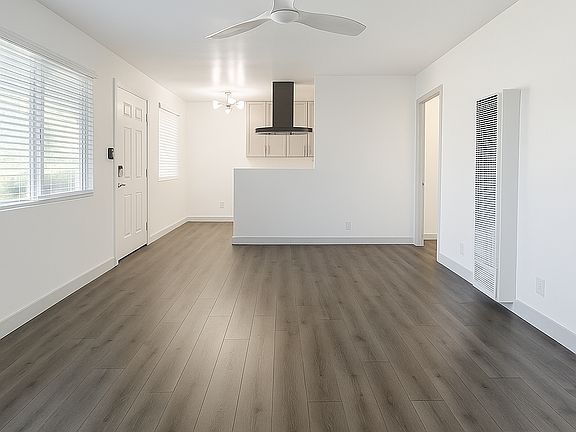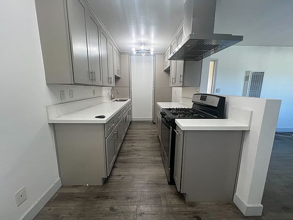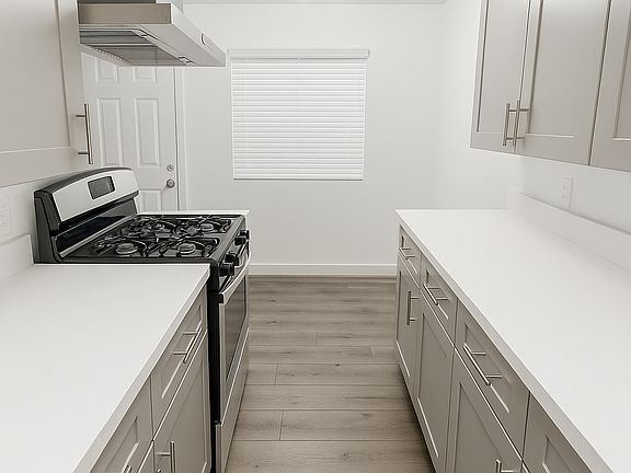 2-bedroom, 1-bath apartment with a sleek, modern vibe from top to bottom. Open-flow living & dining area with huge windows and tons of natural light. Plank-style floors throughout no carpet. Kitchen with quartz countertops, modern gray shaker cabinets, stainless-steel range + vent hood. Spacious bedrooms with large sliding-door closets. Great Location: Close to restaurants, shopping, parks, and easy freeway access.
