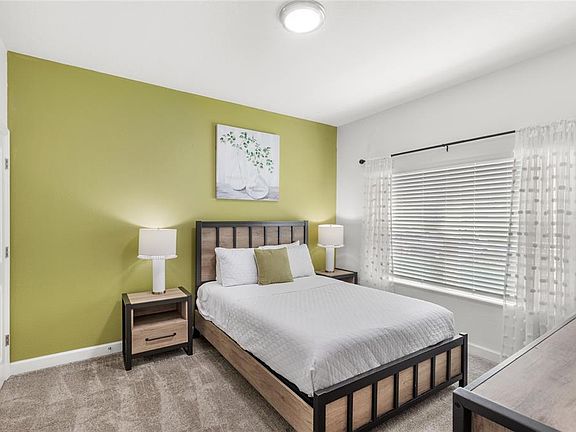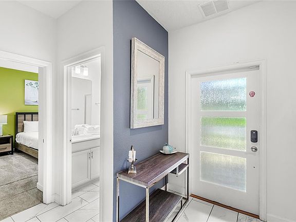 Welcome to your very own Florida retreat! This beautifully furnished 4-bedroom, 3-bathroom home is tucked inside a private gated community with world-class amenities designed for relaxation and fun. Imagine weekends floating along the resort-style lazy river, afternoons on the basketball or soccer courts, and evenings strolling through playgrounds and green spaces. Inside, the home is completely turn-key with a thoughtful layout that includes a bedroom and full bathroom downstairs, perfect for guests or multigenerational living. Upstairs you'll find three additional bedrooms and two bathrooms, offering comfort and flexibility for the whole family. Stylishly furnished sleeping spaces include a king, queen, full, and bunk bed combinations to accommodate everyone with ease. Step outside to your own private screened-in pool with a baby gate for peace of mind and no rear neighbors for extra privacy ideal for both entertaining and unwinding. With WiFi, internet, cable, and pool service all included, this home offers a truly low-maintenance lifestyle where you can simply move in and enjoy.