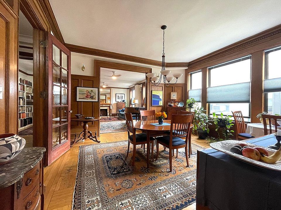 From the moment you enter, the apartment exudes the timeless charm of classic pre-war style - soaring high ceilings, beautifully restored original details, oversized windows, rich wood paneling, intricate moldings throughout and three separate exposures (east, west and north) that fill the space with abundant natural light.