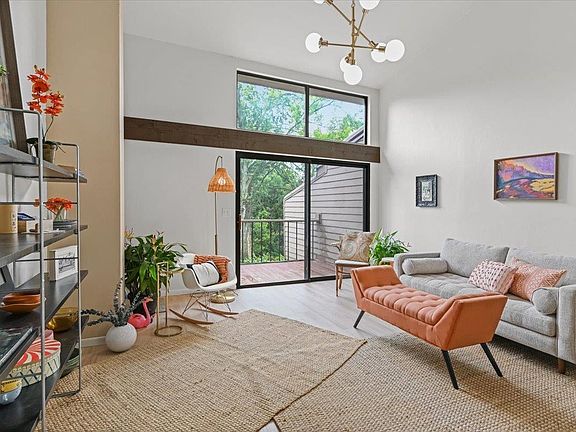 Love the outdoors but not the upkeep? This fully renovated townhome is the perfect low-maintenance retreat you've been looking for! This stylish end-unit townhome has been completely updated with modern touches throughout, offering a bright, inviting space that feels like home from the moment you walk in. Natural light pours in from multiple angles, highlighting the fresh paint, new flooring, and updated lighting fixtures. The reimagined mid-century modern design features an open-concept kitchen with sleek updates, perfect for entertaining or relaxing at home. Just inside the attached one-car garage, a convenient drop zone adds functionality and helps keep things tidy. Step out onto the main-level deck and enjoy peaceful views of local wildlife—your own private perch to unwind in nature. Upstairs, you’ll find two spacious bedrooms and a beautifully updated full bathroom. The walk-out lower level expands your living space with a cozy wood-burning fireplace, a built-in wall feature, a dedicated home office or guest room, a second full bathroom, laundry room, and access to a quiet secluded patio surrounded by greenery. With brand-new kitchen appliances, furnace, AC, washer and dryer, and all-new flooring throughout, this move-in-ready townhome blends comfort, convenience, and style. Whether you're entertaining, relaxing, or working from home, this is your perfect retreat—without the maintenance.