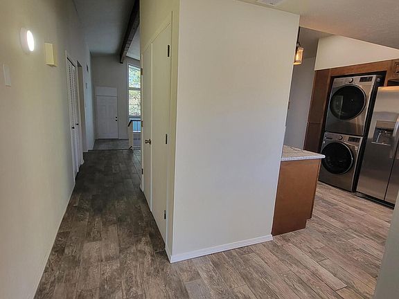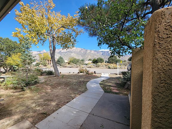 Beautifully remodeled 2 bed 2 bath 2 car garage home with stunning mountain views! This home is tucked in the far northeast heights at the foothills of the mountain and has so much to offer! A few of the updates include Wood look tile, new carpet, remodeled kitchen with sollid brand cabinets with soft close doors and drawers, high end granite counter tops, stainless steel appliances that all stay with home including the washer and dryer, Cathedral, beamed ceilings, floor-to-ceiling windows and wood burning fireplace. This home also has an inviting master suite with two walk-in closets, private courtyard, and a gorgeous updated bath. Additional bedroom with access to amazing back deck. This is a must see! Can be an investment property, first home, or forever home, it covers all bases.