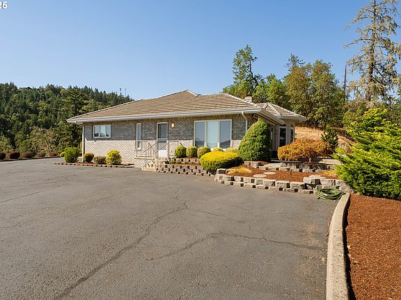 Perched above the valley where the North and South Umpqua Rivers meet, this stunning custom single-level home offers some of the most captivating views in the region. Overlooking a picturesque vineyard, river confluence, and sweeping valley landscape, every window frames a scene of natural beauty.The thoughtfully designed 2,140 sq. ft. home sits on a 1.02-acre lot and showcases timeless curb appeal with its beautiful brick and stucco exterior paired with a tile roof. Inside, an open layout features vaulted ceilings, abundant natural light, and bay windows perfectly positioned to capture the river views. A warm fireplace anchors the living area, while solar tubes add to the bright, inviting atmosphere.The primary suite is a true retreat with private access to enjoy the river vistas, plus a spa-like bath complete with double sinks, custom tile, and a roll-in shower. Hardwood floors in the kitchen and dining room add elegance, and the flow of the home is ideal for both daily living and entertaining.Outside, an oversized, extra-deep three-car garage provides ample space, and a separate hobby studio with heating, cooling, and offers endless possibilities—whether for art, a workshop, or a private office.This is more than a home; it’s a sanctuary set in one of the most scenic spots in the Umpqua Valley. Call for your private tour today!!!