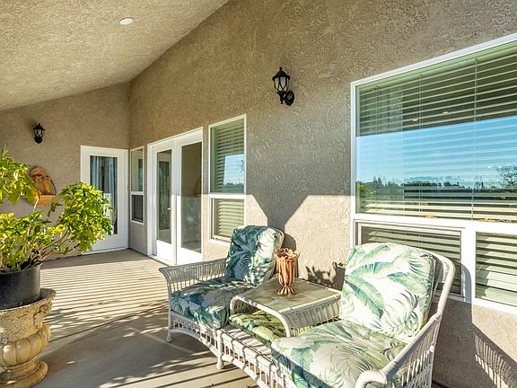 Relax on the expansive terrace equipped with solar-powered remote-controlled shades and outdoor curtains for added privacy. Custom-fitted window blinds and curtains are included. The lushly landscaped front yard features thoughtfully placed potted plants and a tranquil water feature. There is a well thought out concrete path surrounding the home for ease of access to all exterior areas. The finished storeroom & additional space under the home offer ample areas for storage! Shasta Hills Estates offers pickleball court, community saltwater pool, jacuzzi, RV and boat parking area, low HOA fees, a clubhouse, workout room, dog park and walking trails. You don't want to miss this one!