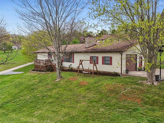 Beautiful Ranch-style Home, sits on a large 1.22 ACRE LOT with gorgeous East Tennessee Mountain and pasture views! Convenient location in Watauga, with no city taxes yet close to everything- short drive to Elizabethton, Bluff City, Piney Flats and Johnson City. Attractive Curb appeal with vinyl siding and stone exterior, concrete driveway, sweet front porch and tidy low maintenance landscaping. 2 car Attached Garage on the Main Level. Love to entertain or enjoy the summer seasons? You'll love the spacious deck off the back, Above-Ground Pool, pad for your Hammock and gorgeous Pond feature! Inside, 4 total bedrooms and 3 bathrooms- 3 beds and 2 baths on the main level, along with an ideal one level layout with Laundry right off the Garage, updated Kitchen with new butcher block counter tops, double oven, dishwasher, Stainless Steel refrigerator and new flooring. Formal dining room, bright breakfast nook, spacious living room with Stone wood burning Fireplace with floor to ceiling windows, and gleaming hardwood flooring throughout the living space. Downstairs, HUGE additional living space that could serve as an In-law Suite or an option for a Rental space with a massive living room with Gas fireplace, Bedroom, full Bathroom with separate soaking tub and stand up shower, Kitchenette or Bar and tons of additional storage closets. This home is completely move in ready, beautifully maintained and an absolute Must See!