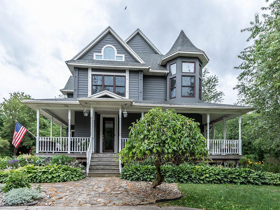 Welcome to 7900 Cutler Road. This beautiful custom built Victorian style home has 3820 square ft of finished space on 3 acres. The two story cathedral ceiling in the foyer provides plenty of natural light with a cherry staircase. The first floor has 9 foot ceilings and maple and cherry hardwood floors. Maple trim is featured on all 3 floors with 5 inch crown molding. The executive office has 8 foot French doors and a tin panel ceiling. The living room is stunning with maple panels, a coffered ceiling, a wet bar and a gas fireplace with a birds eye maple surround. The formal dining room features maple wainscoting and a classic one-of-kind chandelier. The kitchen has a tin panel ceiling, cherry cabinets, a double oven, cook-top stove and an informal eating area. The four season room has a tin ceiling and pine wood paneling. The second floor is spacious with 9 foot ceilings and built- in cabinets for storage with 3 bedrooms and 2 bathrooms. The finished basement has maple trim, a tiger maple bar, and built-in cabinets. There is a 4th bedroom or office and a full bath with a Jacuzzi tub and surround sound. This home has a wonderful wrap around covered front porch, a concrete circle driveway, loft balcony, a power outage connection, central vacuum system, and a heated 14x24 outbuilding with a sun setter awning.
