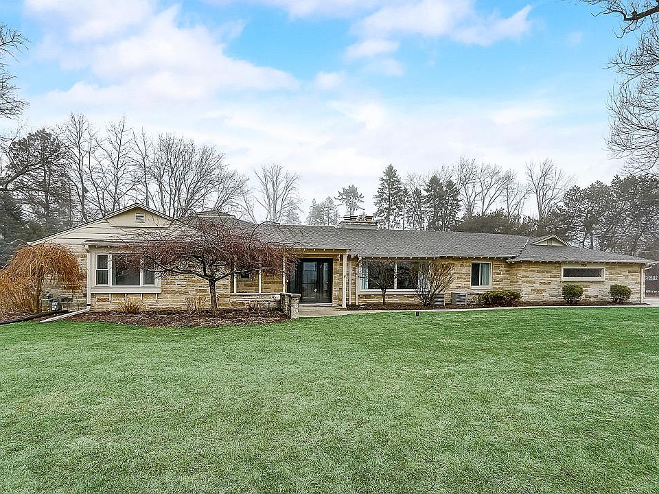 Totally renovated mid-century modern sprawling ranch dream home in one of Fox Point's nicest neighborhoods. Stunning renovations throughout including new kitchen with quartzite tops and prep island with new stainless appliances. All new flooring. All new windows. Freshly painted throughout. Completely insulated. Dreamy first floor Master Bedroom is expansive with loads of closets space and could easily be converted back to a 4th bedroom. Sought after first floor laundry and mudroom. Lower level has it's original mid-century wet bar, half bath and another fireplace. Two large finished rec areas. Oversized 2.5 car attached garage. 3 fireplaces. Rare Park like yard is the star of the show and offers unlimited possibilities.