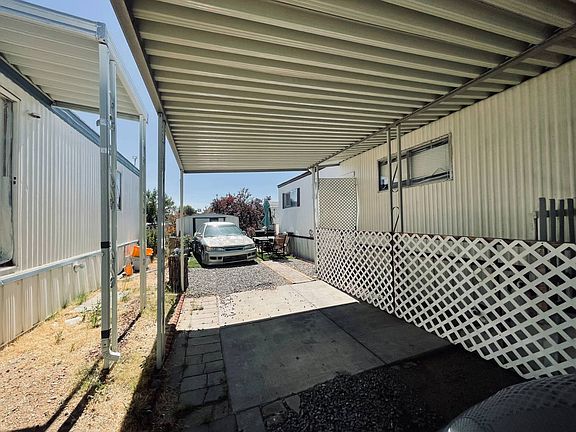 This is a personal property home that does not come with land. For manufactured homes bank financing is only available through specific companies. Contact us today to learn more about your financing options! Features: This home features 2 bedrooms and 1 bathroom, central heating, a swamp cooler, laminate flooring, linoleum, and carpet. The kitchen cabinets are new-er. The following appliances will stay with the home: refrigerator, gas stove, washer, and dryer. Outside, there is green grass, two storage sheds, and a carport for parking. Located on a corner lot!