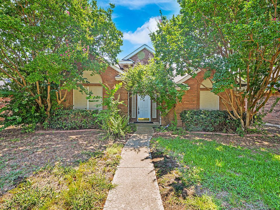 This charming 3-bedroom, 2-bathroom single-story home in the sought-after Preston Ridge community of Frisco offers 1,577 sq. ft. of comfortable living space. Featuring an open-concept layout with vaulted ceilings, wood floors, and a cozy fireplace, it's perfect for both relaxing and entertaining. The updated kitchen includes stainless steel appliances, decorative finishes, and a movable island for added convenience. The spacious master suite boasts an oversized garden tub and double shower, while additional bedrooms offer versatility for family or guests. Outside, enjoy a covered patio and fenced backyard on a 0.13-acre lot. Located in Frisco ISD near shopping, dining, and major highways, this property blends comfort, style, and an unbeatable location. (Carpet Removed)
