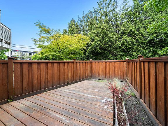 Private fenced yardBright open-concept main floorModern kitchenSecond bedroom with balconyVersatile denNew flooringHot water tank