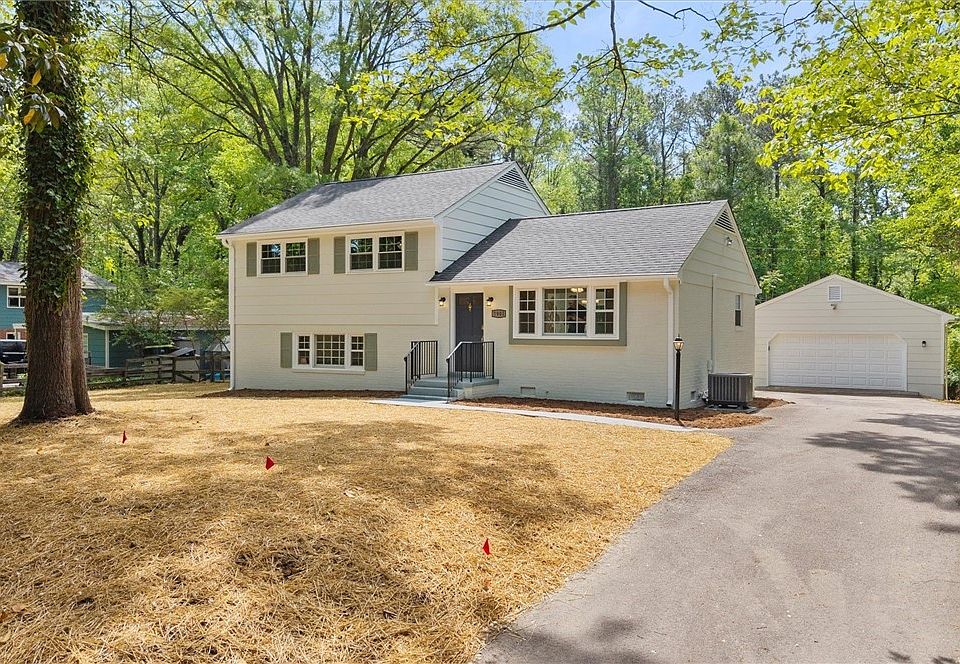 Tucked away on a quaint street is this gem situated on a large lot with privacy and room to play outside! Beautiful painted brick exterior, detached 24x29 garage, paved drive, and new deck complete the exterior of the home. Inside you are greeted with an abundance natural light from the front picture window and from the back sliding glass doors. The living room has beautifully refinished red oak hardwood flooring and has been updated with recessed lighting and a ceiling fan. Entertain effortlessly in the adjacent eat in kitchen. Gorgeous updates that include quartz countertops, clean white cabinetry, stainless appliances, stylish green tile backsplash, dining space, LVT flooring, and new sliding glass doors that overlook the new deck and generous sized rear yard. Minimal steps will take you to the second level of the home where you will find three very spacious bedrooms all with hardwood floors, ample sized closets, and ceiling fans. There is also a full bath that has been tastefully updated with new vanity, LVT flooring, new fixtures, and tub/shower combo with tile surround. The lower level of the home is the real surprise! This space was designed to be an entire suite. It includes the laundry room and a half bath both updated and pleasing to the eye. The primary suite includes a large bedroom with double closets and an additional storage closet. An en suite bathroom with double vanity, Walk in shower, high end finishes, and an additional walk in closet. This part of the home is direct entry and has no stairs. Other notable features include: new roof on home and garage, new windows, dual zoned hvac (2018/2025), new water heater, appliances convey, new deck with decorative railings, amazing location!