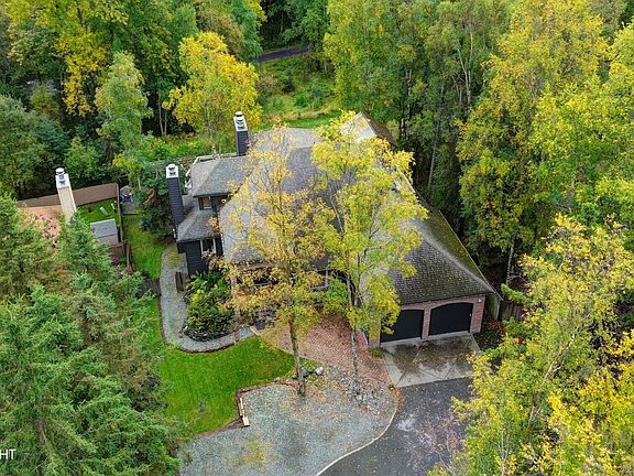 Stunning custom home nestled in a privately treed lot, immediate access to Campbell Creek Trail just walking distance to Taku Lake. Cathedral ceilings, luxury finishes and a thoughtful layout, ideal for an extended family or multiple bnb's. Higher end main living quarters, and 3 distinct areas with their own kitchenettes and private access. South facing deck, multiple sheds and a chicken coup!Laminate, hardwood, and tile flooring throughout each unique living space. Beautiful built in cherry bookshelves & pantry, & tongue/ groove cedar accents throughout. Updated main kitchen w/ solid surface counters, tile backsplash, refinished cabinets and viking range & stainless steel appliances. Master bedroom w/ woods views, a Jacuzzi tub & separate shower and his/her closets & sinks. The dining area and living areas are south facing, and overlook the tranquil greenbelt setting. Media room with full stone fireplace surround, recessed TV space, and tile flooring. Recent improvements include 2025 fresh exterior paint, 2023 new furnace & hot water heater, 2020 full main kitchen remodel, bathroom remodels, and a new roof in 2016. Fully fenced yard, RV parking spaces. Large 2 car garage, with ample storage for toys. Multiple parking areas, perfect for multi-gen living or a bnb. Gorgeous south facing deck, looking onto a greenbelt! Woodsy ambience with birch trees, a lovely deck gazebo plumbed for a gas barbeque, and private entrances for extended family, or bnb guests! Large shed with electric & gas plumbed, that has its own private yard and direct trail access. The beautiful yard is complete with a cedar chicken coop and run! R2M lot with many future possibilities! Assumable VA Loan - 3.375% APR