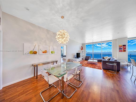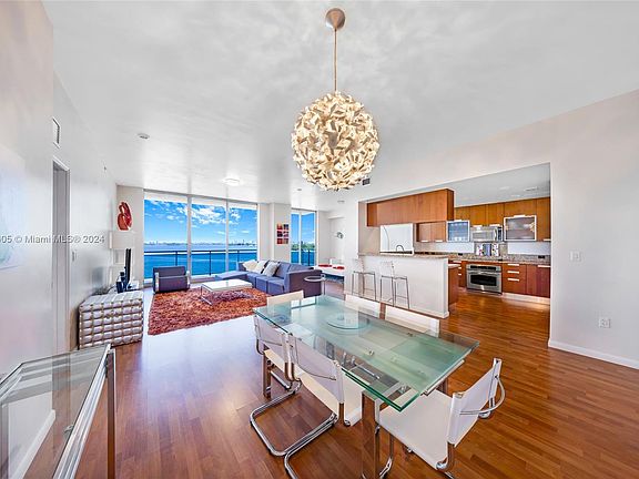 Experience luxury living in this exquisite corner unit located in the heart of North Bay Village. With breathtaking water and city views from every room, this condo truly captures the essence of Island living. Boasting 2 bedrooms + Den / 2.5 bathrooms, this spacious condo offers 1,753 sq ft of living area and an expansive 608 sq ft balcony. The open floor plan is flooded with natural light, creating a warm and inviting atmosphere. The large kitchen is a chef's dream, featuring SS appliances, ample counter space, and abundant storage. A snack counter runs the length of the kitchen, perfect for casual dining or entertaining guests. CONTINUED UNDER SUPPLEMENTAL REMARKS.