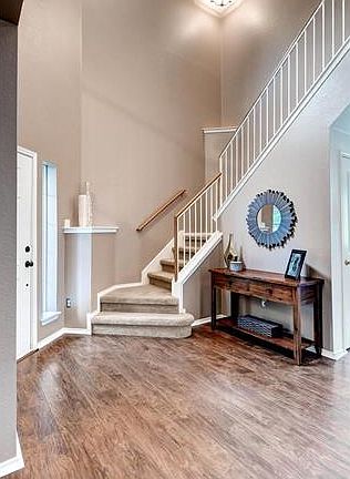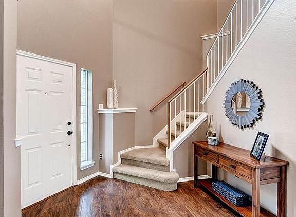 Gorgeous corner lot home! Move-in ready home features a spacious living room with a stunning stone fireplace, wood floors, and tons of windows to see the beautiful backyard with a pool and covered patio- perfect for entertaining. Retreat upstairs to the large master suite with a walk-in closet, garden tub, shower and double vanity. 3 bedrooms, 2.5 bath. Walk to nearby community park with community pool, tennis courts, basketball court, and more. Easy access to restaurant and shops- this is a must see!